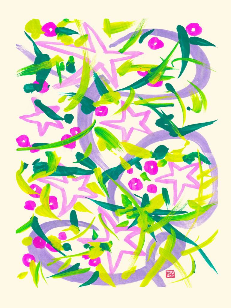 Wishing Stars (Purple Magenta Green Garden Botanical Abstraction) Drawing